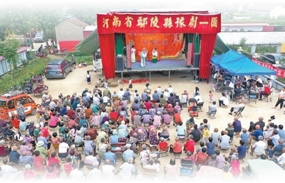 傍晚時(shí)分,天氣漸漸涼爽。河南許昌鄢陵縣彭店鎮(zhèn)謝坊村,村委會(huì)大院擠滿(mǎn)了人。72歲的老戲迷趙培龍手搖蒲扇,守在戲臺(tái)最近的位置……聽(tīng)說(shuō)村里來(lái)了戲班,他早早備好小馬扎,“每隔一段時(shí)間,就想聽(tīng)聽(tīng)劇團(tuán)的戲,好著哩!”