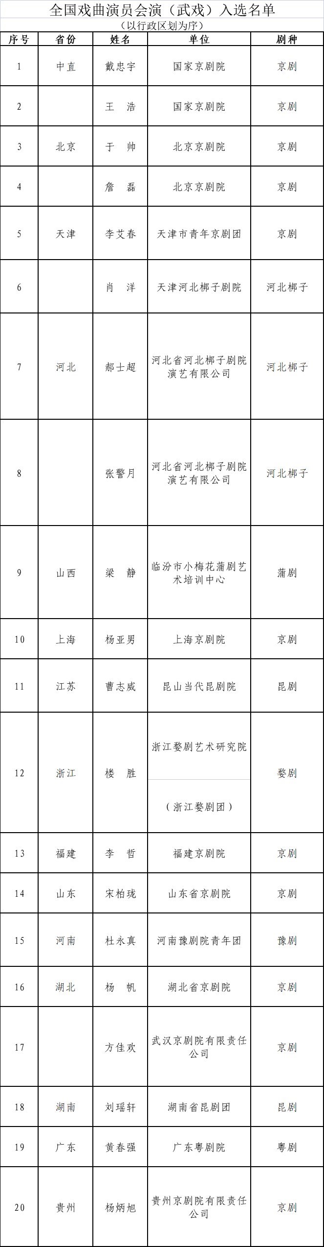 人民網(wǎng)北京3月25日電 (記者楊虞波羅)據(jù)文化和旅游部官網(wǎng)消息,日前,全國戲曲演員會演(武戲)遴選和公示工作已結(jié)束。現(xiàn)將入選名單予以公布,并就有關(guān)事項函告如下。
