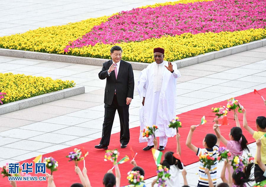 5月28日,國家主席習近平在北京人民大會堂同尼日爾總統(tǒng)伊素福舉行會談。這是會談前,習近平在人民大會堂東門外廣場為伊素福舉行歡迎儀式。