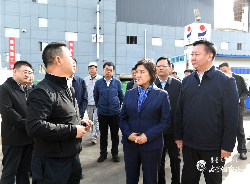 10月11日,自治區(qū)黨委副書記、自治區(qū)主席布小林來到烏海市烏達(dá)區(qū)內(nèi)蒙古興發(fā)科技有限公司有機(jī)硅新材料一體化循環(huán)項(xiàng)目現(xiàn)場,深入了解企業(yè)技術(shù)路線、環(huán)保裝置等方面情況。內(nèi)蒙古日報記者 韓卿立 攝