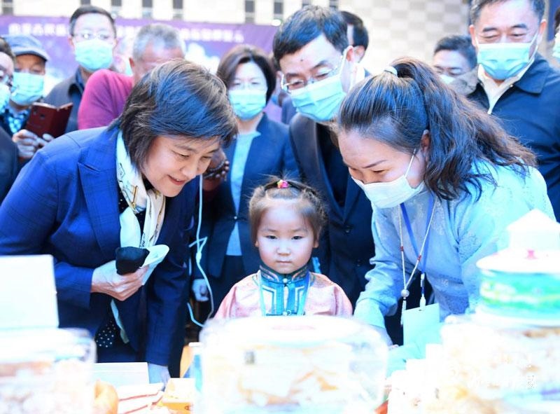 10月17日,自治區(qū)黨委副書記、自治區(qū)主席布小林,在全區(qū)推進奶業(yè)振興暨民族傳統(tǒng)奶制品產(chǎn)業(yè)發(fā)展現(xiàn)場會上參觀各盟市民族傳統(tǒng)奶制品產(chǎn)品展示。內(nèi)蒙古日報記者 韓卿立 攝