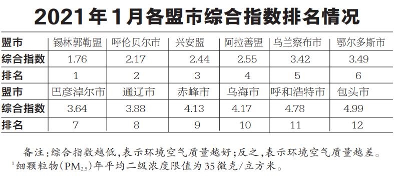 按照常規(guī)六項(xiàng)污染物綜合指數(shù)排名, 12個(gè)盟市環(huán)境空氣質(zhì)量由好至差依次為:錫林郭勒盟、呼倫貝爾市、興安盟、阿拉善盟、烏蘭察布市、鄂爾多斯市、巴彥淖爾市、通遼市、赤峰市、烏海市、呼和浩特市和包頭市。(內(nèi)蒙古日報(bào)社融媒體記者 梁亮)