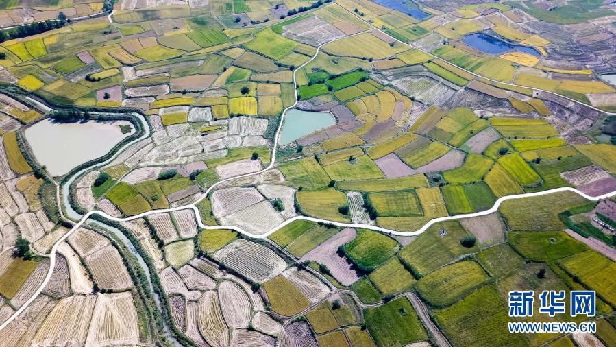 安徽省滁州市鳳陽小崗村的田野景象(2018年9月27日攝,無人機(jī)照片)。新華社記者張端攝