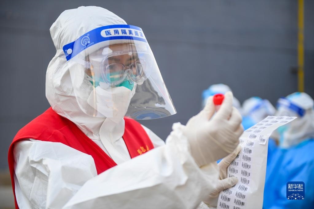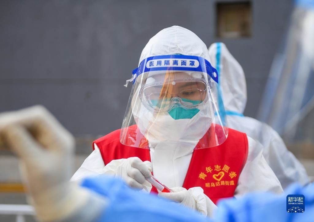 連日來,在呼和浩特市的戰(zhàn)“疫”路上,志愿者沖鋒在前。他們協(xié)助開展核酸檢測、社區(qū)管控等工作,為筑牢防疫安全屏障貢獻自己的力量。(新華社記者 彭源攝)