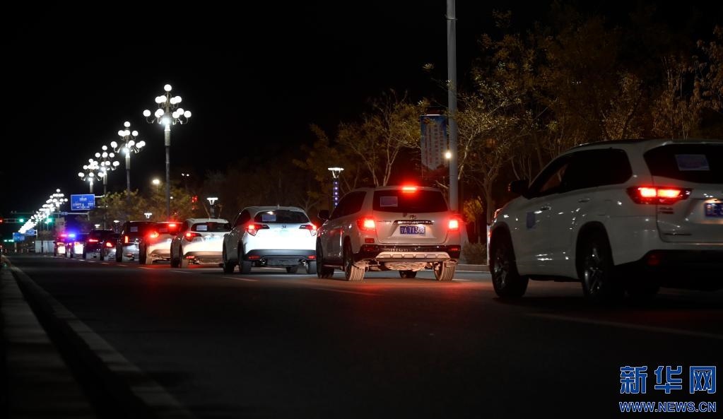 10月28日,即將離開額濟(jì)納旗的滯留自駕游客車隊。新華社記者 王雪冰 攝