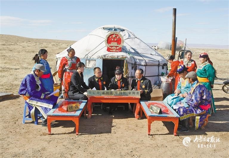 錫林浩特市人民法院組建的“牧區(qū)巡回法庭”開到了牧民家門口,被當?shù)厝罕娪H切地稱為“馬背法庭”。內(nèi)蒙古日報社融媒體記者 馬建荃 攝