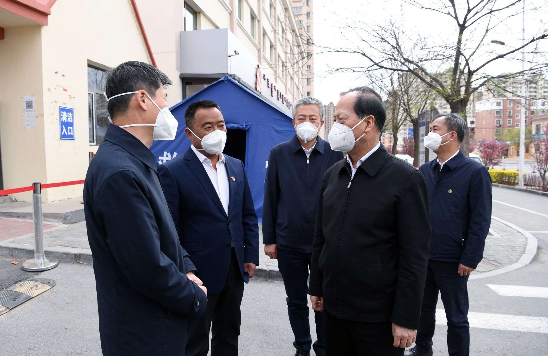 4月26日,自治區(qū)黨委書記、人大常委會(huì)主任石泰峰來到包頭市九原區(qū)龍?jiān)沸^(qū)B區(qū),了解疫情防控封控情況。內(nèi)蒙古日?qǐng)?bào)社融媒體記者 袁永紅攝