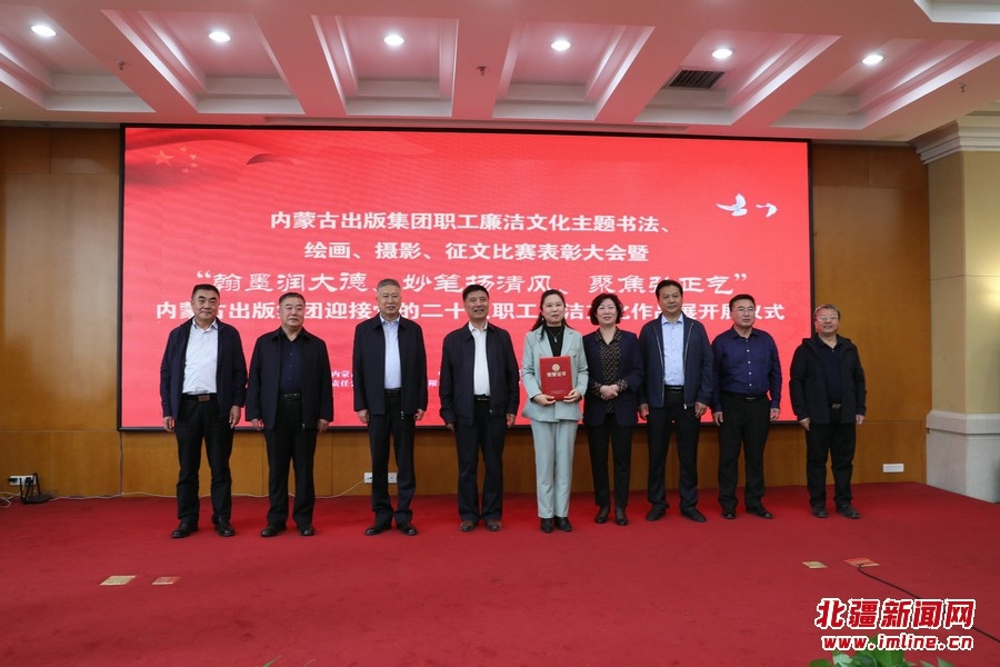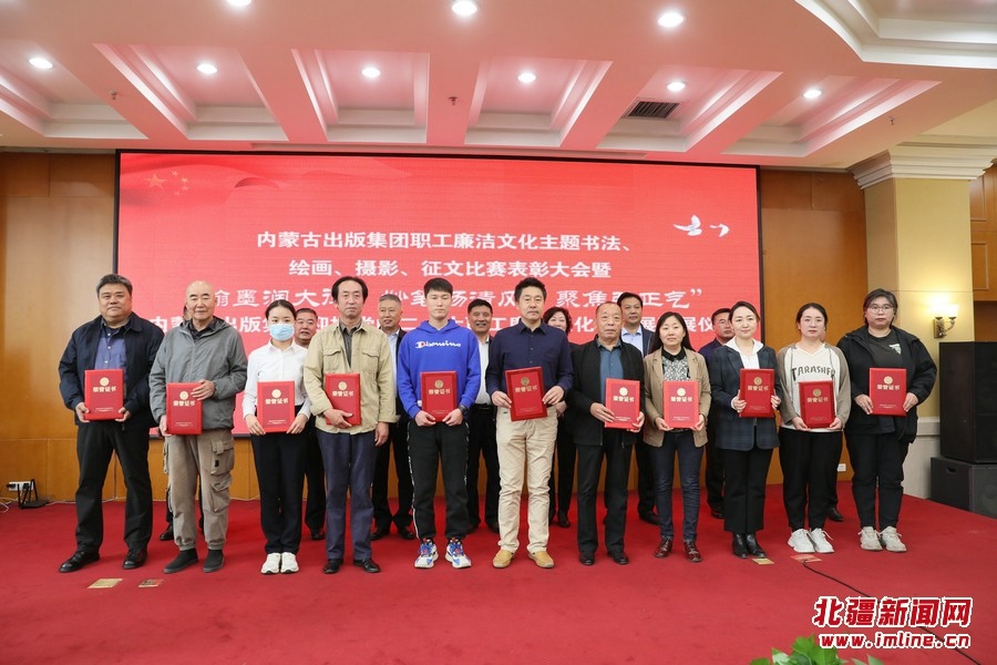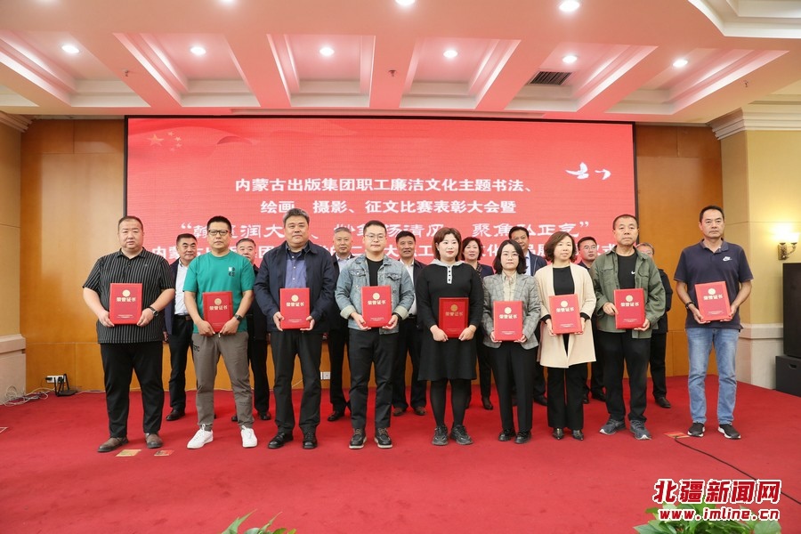 北疆新聞網(wǎng)、北疆新聞APP、北疆云消息(記者 張楊)9月22日,內(nèi)蒙古出版集團(tuán)職工廉潔文化主題書法、繪畫、攝影、征文表彰大會暨“翰墨潤大德、妙筆揚(yáng)清風(fēng)、聚焦弘正氣”內(nèi)蒙古出版集團(tuán)迎接黨的二十大職工廉潔文化作品展開展儀式在集團(tuán)二樓舉行。自治區(qū)紀(jì)委監(jiān)委駐黨委宣傳部紀(jì)檢監(jiān)察組二級巡視員聶榮峰,集團(tuán)黨委書記、董事長雙龍和出版集團(tuán)在家領(lǐng)導(dǎo)班子成員、在呼各單位班子成員、集團(tuán)總部全體、各單位獲獎?wù)叽淼葏⒓颖碚么髸⒂^看展出,集團(tuán)黨委副書記王富主持表彰大會。