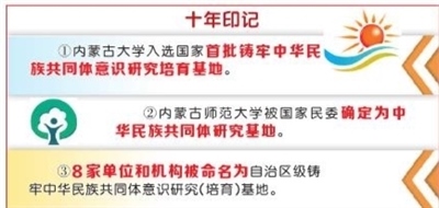 2020年2月,內(nèi)蒙古大學(xué)入選國家首批鑄牢中華民族共同體意識研究培育基地;2021年3月,內(nèi)蒙古師范大學(xué)被國家民委確定為中華民族共同體研究基地;2021年8月,8家單位和機(jī)構(gòu)被命名為自治區(qū)級鑄牢中華民族共同體意識研究(培育)基地……內(nèi)蒙古不斷加強(qiáng)中華民族共同體重大基礎(chǔ)性問題研究,持續(xù)推動鑄牢中華民族共同體意識與經(jīng)濟(jì)發(fā)展、鄉(xiāng)村振興、生態(tài)保護(hù)、基層治理等有機(jī)結(jié)合,深度融合。