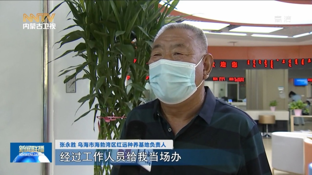 張永勝 烏海市海勃灣區(qū)紅遠種養(yǎng)基地負責人 我原來想的辦這個東西挺費勁,經(jīng)過工作人員給我當場辦,比我想象的還要快,我非常高興。