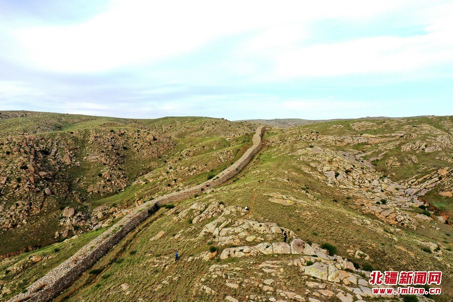 據(jù)考證,秦長城東起呼和浩特市新城區(qū)坡根底村北部的大青山南麓,沿陰山山脈西行,經(jīng)武川縣出大青山,穿越固陽縣中部的色爾騰山、烏拉特前旗的查石太山和烏拉特中旗的罕烏拉山,西部端點(diǎn)在小狼山西麓石蘭計(jì)山口。其中,土筑長城墻體于地表呈明顯的土壟狀,石筑長城遺跡保存較好,基寬3—5米,墻體外壁高5米左右,沿線建筑有烽燧、障城及部都尉城。沿山而建,氣勢磅礴,蔚為壯觀。固陽縣境內(nèi)全長近96公里,是中國早期長城的代表性段落;1987年被列入世界文化遺產(chǎn)。2012—2018年,經(jīng)國家文物局批準(zhǔn),包頭市文物局組織實(shí)施了固陽秦長城天盛成段的保護(hù)工程,修繕長城墻體2148米、烽燧1座。