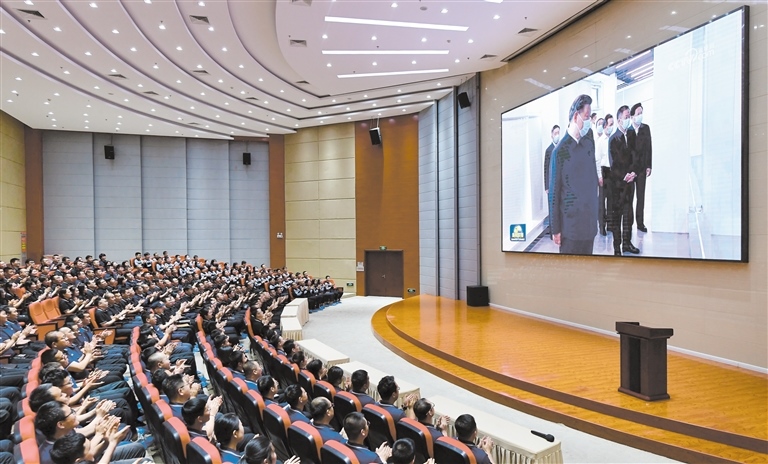 “重溫見到總書記的場景,我還是很激動。”當新聞聯(lián)播畫面出現(xiàn)習近平總書記和中環(huán)產業(yè)園員工親切交流的畫面時,大家難掩內心的激動紛紛鼓掌。職工董鵬飛興奮地說:“總書記很關心我們的新能源產業(yè),夸贊我們的企業(yè)和園區(qū)辦得不錯,這讓我和同事們倍感振奮和自豪。我是從最基層生產線上的一名操作工成長為現(xiàn)在的培訓師的,希望能培養(yǎng)更多更優(yōu)秀的專業(yè)技術人才,在綠色能源產業(yè)方面發(fā)光發(fā)熱。”