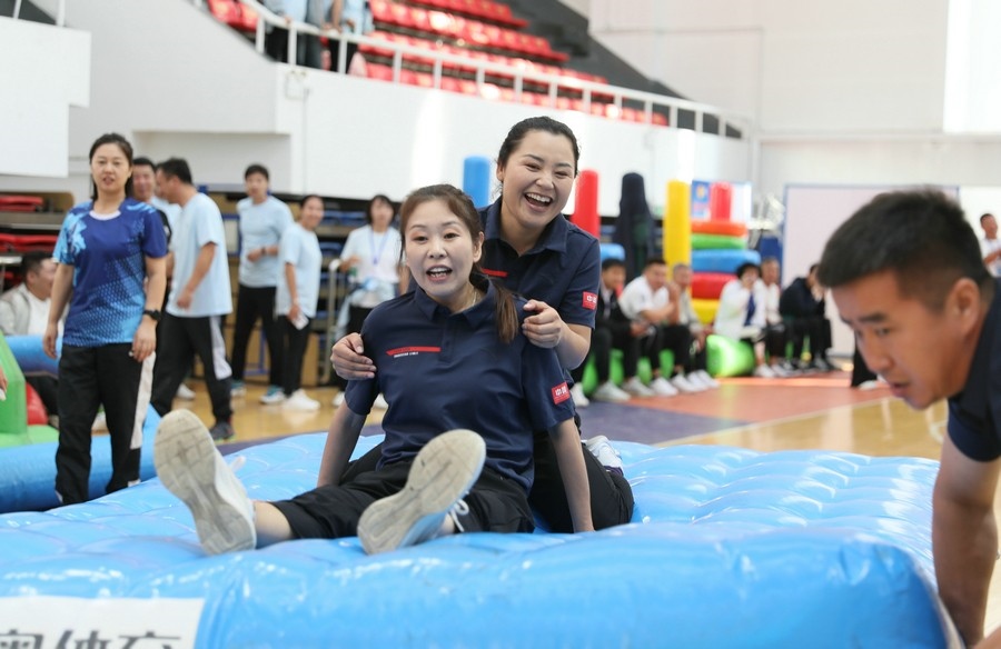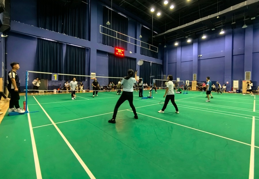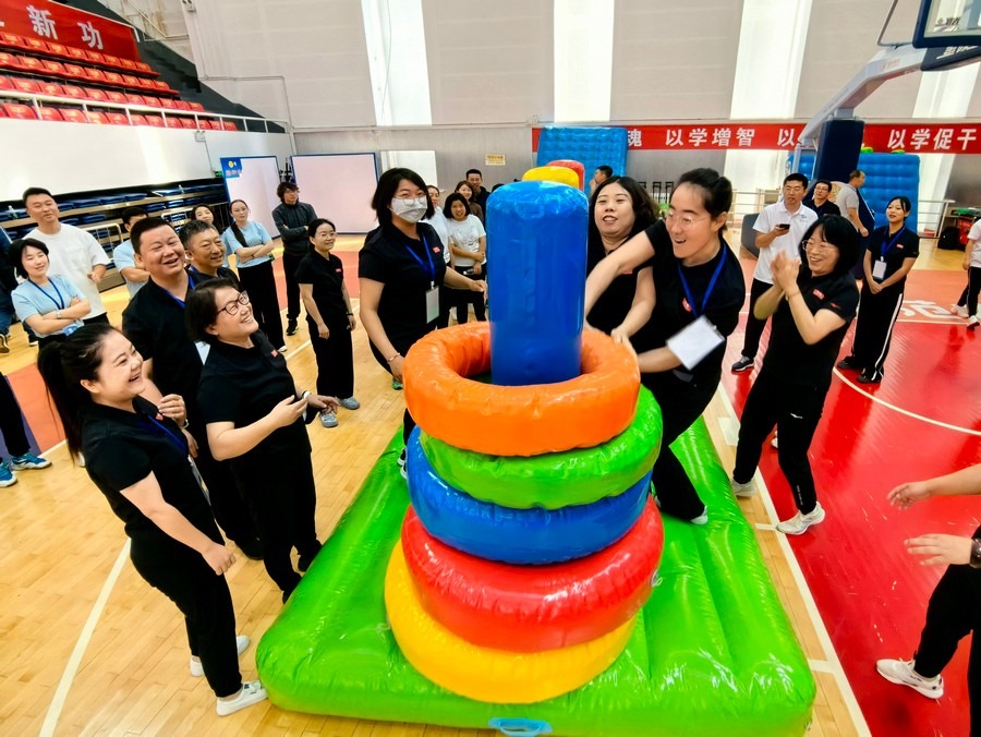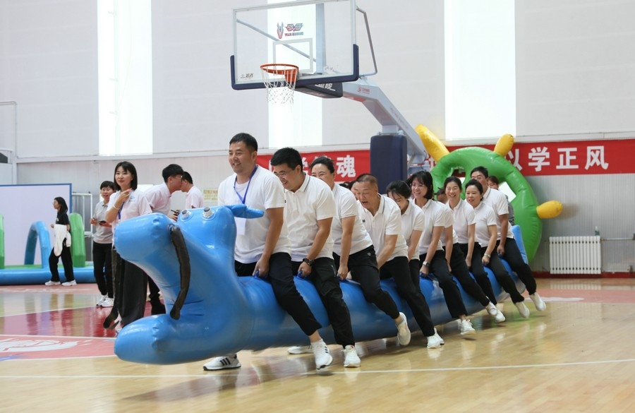 在隨后進(jìn)行的趣味運(yùn)動(dòng)會(huì)中,依次進(jìn)行了“陸地冰壺”“龜兔賽跑”“漢諾塔”等比賽項(xiàng)目。而在此前一天,羽毛球等項(xiàng)目也已開(kāi)賽。賽場(chǎng)上,運(yùn)動(dòng)員們團(tuán)結(jié)一心,奮力拼搏。觀眾席上,“最強(qiáng)氣氛組”組成強(qiáng)大的啦啦隊(duì),為參賽選手們吶喊助威、加油鼓勁,共同凝聚團(tuán)隊(duì)的精神,一起分享比賽的快樂(lè)。