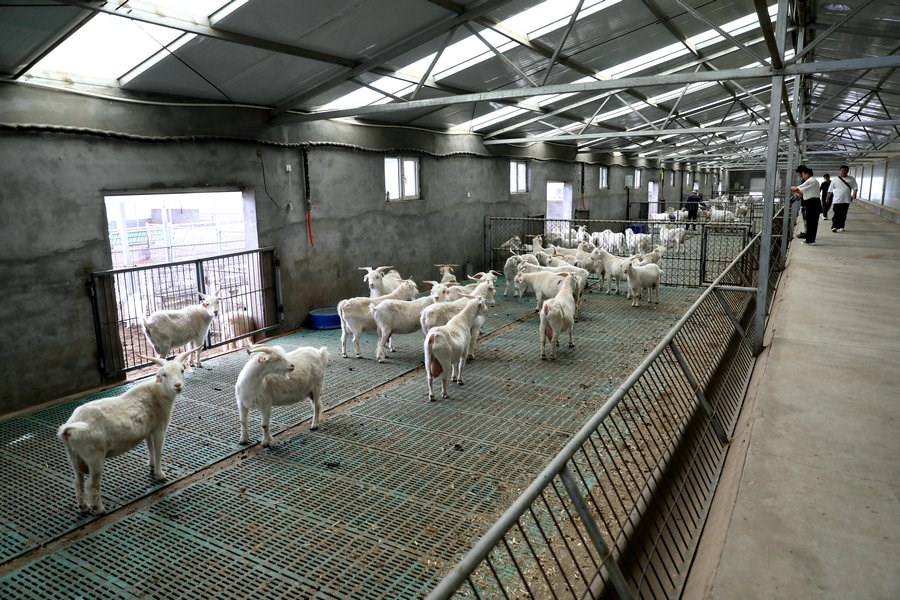 采訪(fǎng)團(tuán)參觀(guān)敏蓋絨山羊原種繁育中心