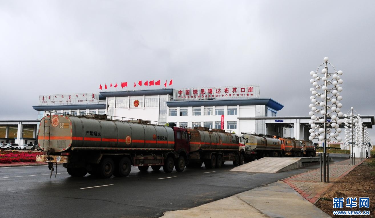 大卡車駛過(guò)珠恩嘎達(dá)布其口岸。資料圖 ??