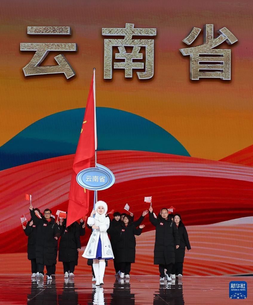 ??2月17日,云南省體育代表團(tuán)在開幕式上入場。新華社記者 李博 攝