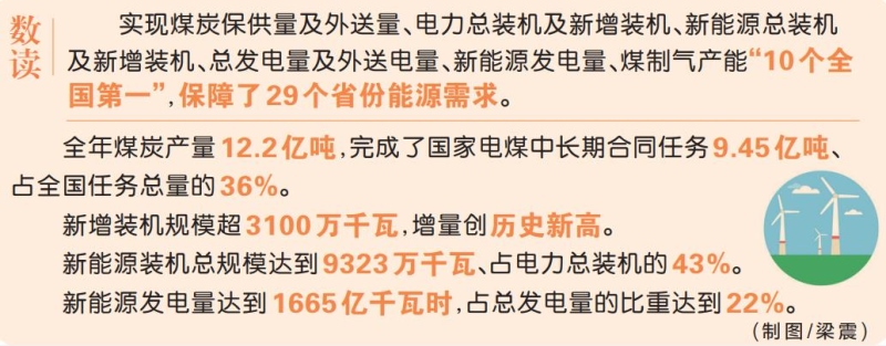 這一年,內(nèi)蒙古堅(jiān)決服從服務(wù)國(guó)家大局,全力抓好能源穩(wěn)產(chǎn)保供。全年煤炭產(chǎn)量12.2億噸,完成了國(guó)家電煤中長(zhǎng)期合同任務(wù)9.45億噸、占全國(guó)任務(wù)總量的36%,外送煤炭7.2億噸、外送電量3065億千瓦時(shí)。