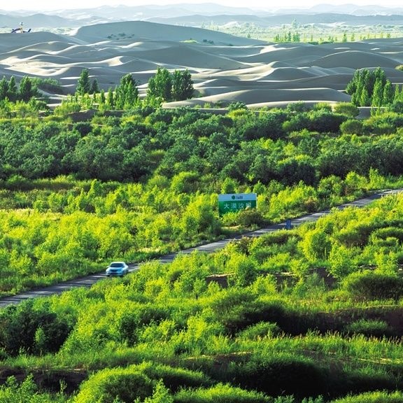 在與沙的博弈中,內(nèi)蒙古探索出許多行之有效的模式和路子,為全國乃至全球荒漠化防治提供了“中國方案”、貢獻了“中國智慧”。庫布其沙漠治理模式被巴黎氣候大會標(biāo)舉為“中國樣本”,樹立了生態(tài)治理的國際典范。如今,庫布其治沙模式、技術(shù)和成果已經(jīng)走向世界,為全球3600萬平方公里的荒漠化土地治理和無數(shù)受荒漠化威脅的人們貢獻著“方案”與“智慧”。阿拉善盟摸索出一套適合極度干旱地區(qū)飛播造林的技術(shù)模式,打破了年降水量200毫米以下地區(qū)屬于飛播造林“禁區(qū)”的“魔咒”,為其他同等氣候條件下的沙漠治理提供了示范。向沙漠要效益,沙漠變資源,沙海變“藍海”,內(nèi)蒙古保護生態(tài)與改善民生步入良性循環(huán)……