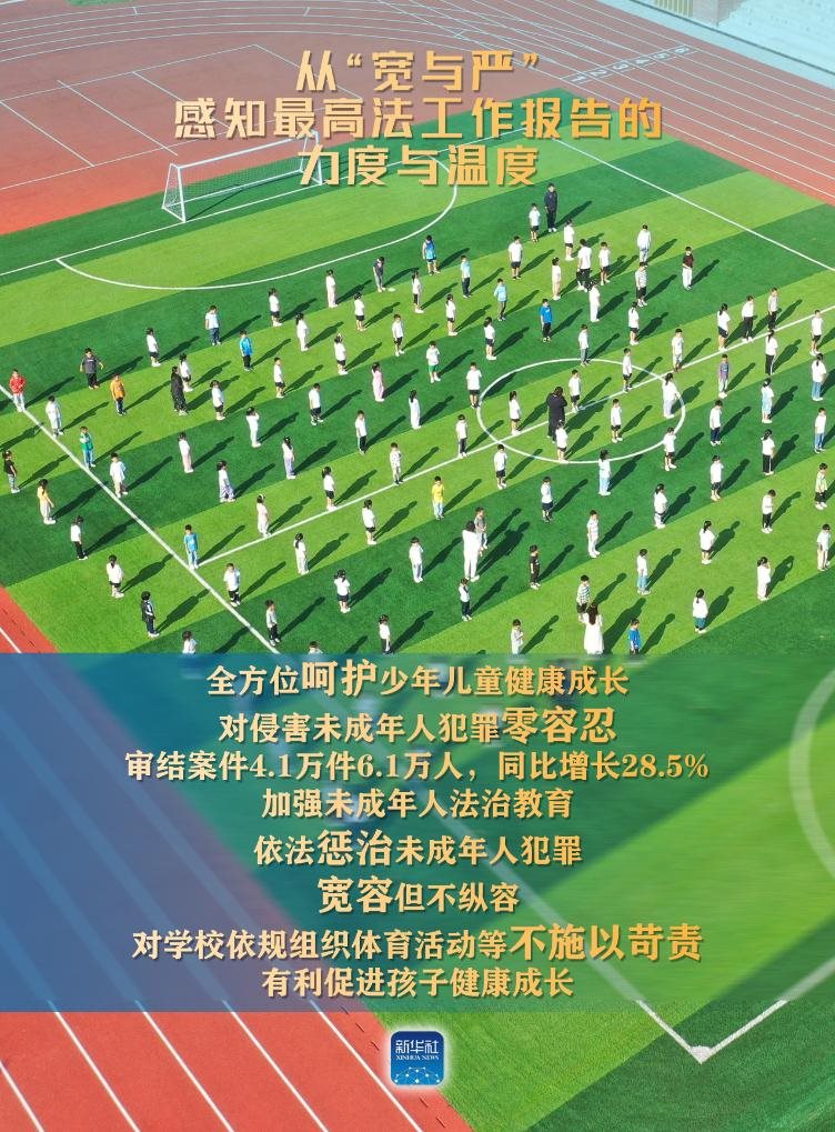 ——全方位呵護(hù)少年兒童健康成長(zhǎng)。對(duì)侵害未成年人犯罪零容忍,審結(jié)案件4.1萬(wàn)件6.1萬(wàn)人,同比增長(zhǎng)28.5%。
