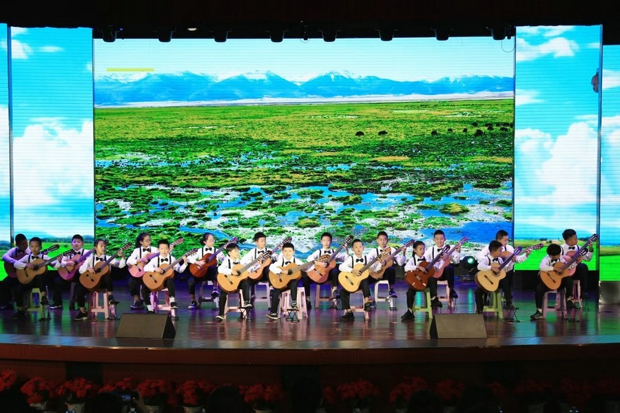 合唱《強國一代有我在》《祖國有我》、古典吉他合奏《天邊》、京劇《梨園薈萃》、朗誦《致敬祖國》、中國舞《碇步橋》、合唱《黨的孩子》《四季的問候》、《民族團結英雄贊歌》、古箏齊奏《上春山》、拉丁現(xiàn)代舞《紅旗飄飄》、朗誦《你好,未來的我們》、師生舞蹈《外婆橋》、合唱《石榴籽一家親》等13個展演節(jié)目輪番上演。