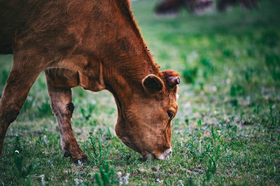 牛兒游閑地吃草