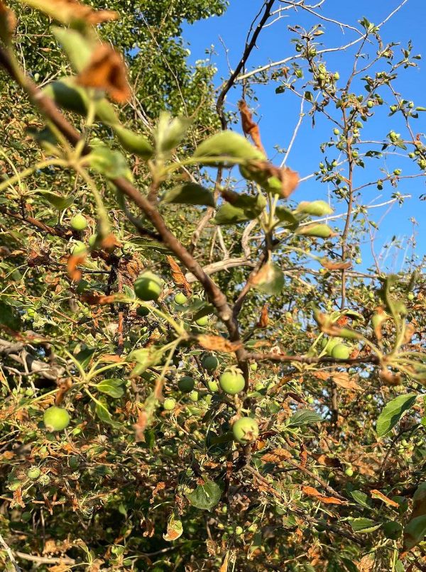 ??多年后,隨著條件改善,村里打上機(jī)井,大壩逐漸廢棄,壩下無人料理的果樹卻還年年結(jié)果。今年,又有不少綠色小果子掛在枝頭。馮玉寬每到夏天都要回來摘一點(diǎn),帶回家曬果干。“這就是一種情結(jié)。小時(shí)候放暑假,我們孩子就來這吃果子,吃到肚脹……”