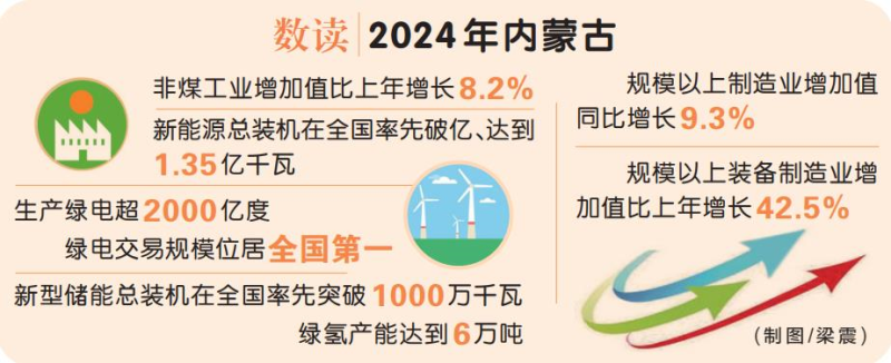 內(nèi)蒙古以新能源全產(chǎn)業(yè)鏈發(fā)展為牽引推進產(chǎn)業(yè)結構優(yōu)化升級,下大氣力培育非煤、非資源型產(chǎn)業(yè),以新動能促進新發(fā)展,2024年,全區(qū)非煤工業(yè)增加值比上年增長8.2%?! ?/p>