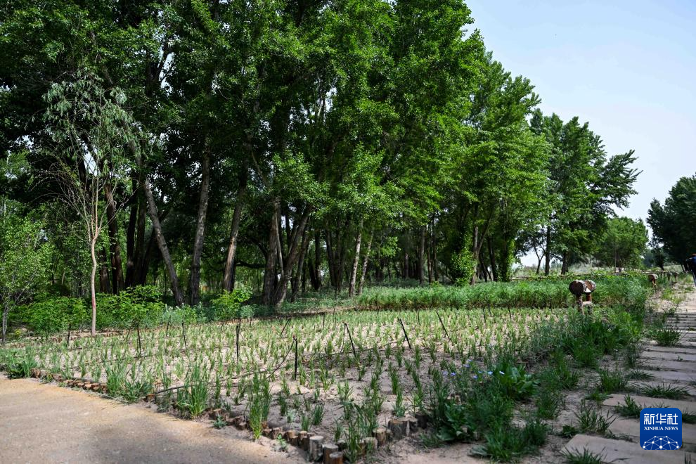 這是5月29日拍攝的巴彥淖爾市臨河區(qū)國(guó)營(yíng)新華林場(chǎng)里的沙生植物苗圃 新華社記者 李志鵬 攝