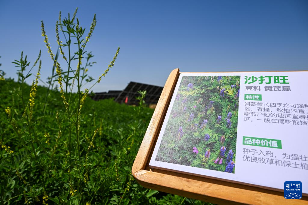 這是在位于巴彥淖爾市臨河區(qū)的國(guó)營(yíng)新華林場(chǎng)防沙治沙和光伏一體化項(xiàng)目拍攝的當(dāng)?shù)胤N植的沙生植物(6月5日攝)新華社記者 連振 攝