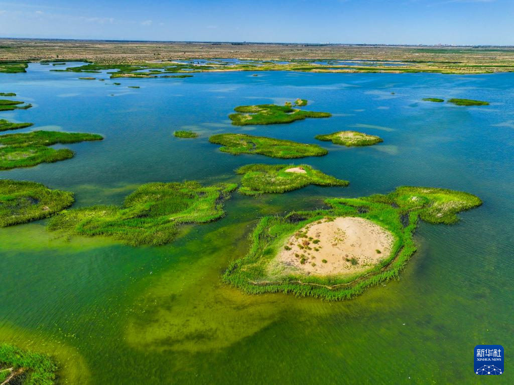 這是位于巴彥淖爾市磴口縣的奈倫湖國(guó)家濕地公園(6月5日攝,無(wú)人機(jī)照片)。新華社記者 連振 攝