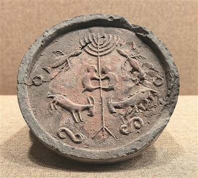 遺址展示館內(nèi),戰(zhàn)國(guó)時(shí)期樹(shù)木鳥(niǎo)獸紋瓦當(dāng)、漢代“富樂(lè)未央,子孫宜昌”銘文磚、北魏角抵瓦當(dāng)?shù)冉ㄖ?gòu)件,訴說(shuō)著古城的千年繁華。樹(shù)木鳥(niǎo)獸紋瓦當(dāng)正中有一株挺拔的樹(shù),弧形樹(shù)冠向上舒展,枝葉兩側(cè)對(duì)稱雕刻振翅飛鳥(niǎo),樹(shù)干上的兩只猴子呈攀緣姿態(tài)相對(duì)而立,樹(shù)根部對(duì)飾兩只山羊,造型質(zhì)樸。內(nèi)蒙古師范大學(xué)北疆文化研究中心主任陳永志介紹:“樹(shù)冠飛鳥(niǎo)、猴子攀樹(shù)題材源自中原地區(qū)靈魂升天、王侯將相等文化元素,而對(duì)羊紋又具有草原游牧民族風(fēng)格。這件瓦當(dāng)生動(dòng)體現(xiàn)了中原文化與北方草原文化的交融?!?/p>