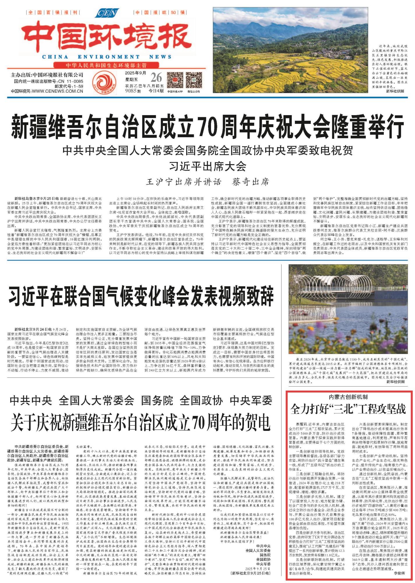 2025年9月26日《中國(guó)環(huán)境報(bào)》第1版
