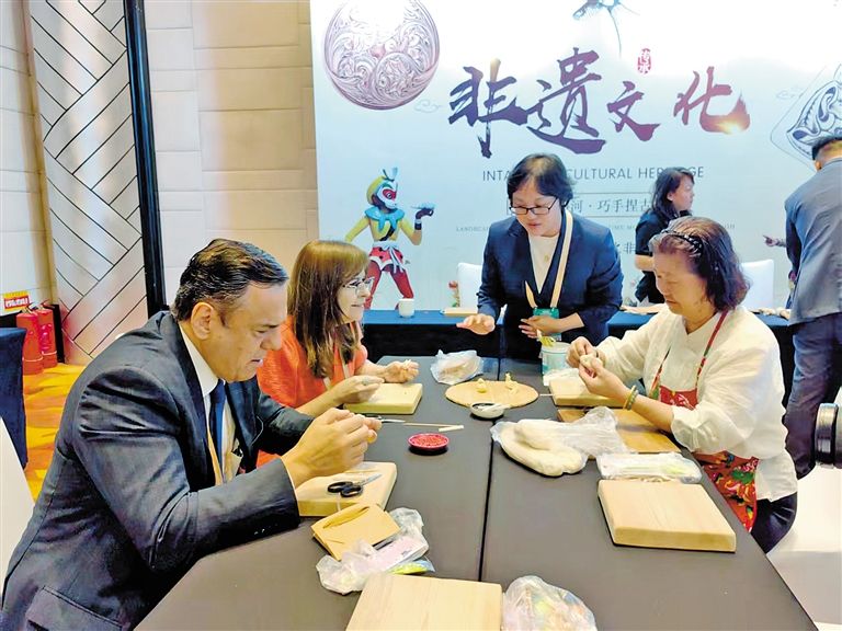 外賓在第五屆中蒙博覽會(huì)2025年國(guó)家向北開放重要橋頭堡智庫(kù)論壇非遺文化展區(qū)體驗(yàn)。 草原云·內(nèi)蒙古新聞網(wǎng)記者 李永桃 攝