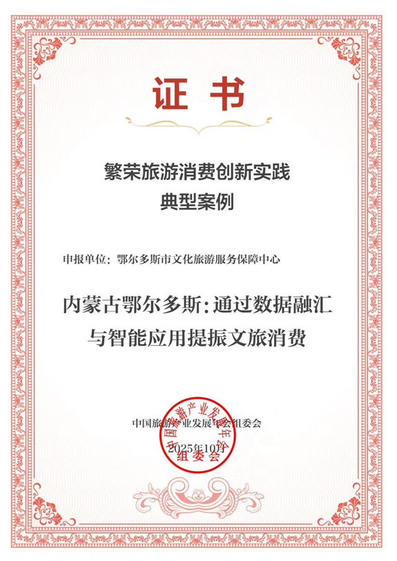 鄂爾多斯市“通過數(shù)據(jù)融匯與智能應(yīng)用提振文旅消費(fèi)”案例入選2025繁榮旅游消費(fèi)創(chuàng)新實(shí)踐典型案例。