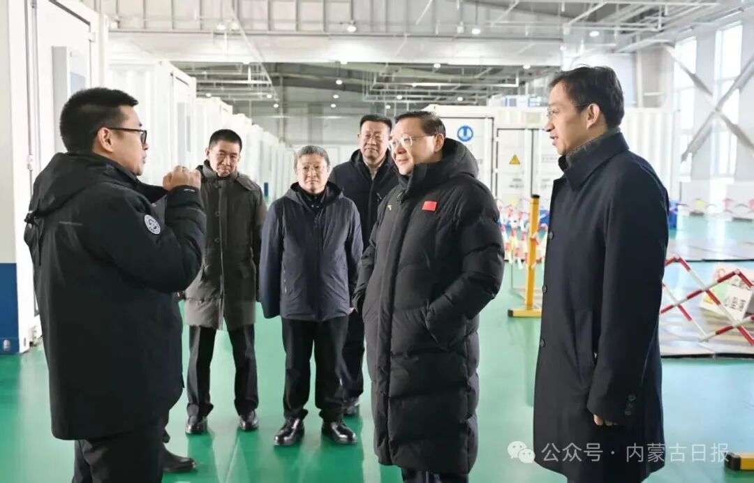 在三峽現(xiàn)代能源創(chuàng)新示范園,王偉中聽取新能源開發(fā)建設(shè)運(yùn)營和“源網(wǎng)荷儲(chǔ)”技術(shù)研發(fā)應(yīng)用等情況介紹。他說,要立足能源本質(zhì)安全,提高新能源開發(fā)水平,大力推進(jìn)多種新型儲(chǔ)能技術(shù)開發(fā)和應(yīng)用示范,推動(dòng)儲(chǔ)能產(chǎn)業(yè)降本增效,不斷塑強(qiáng)綠色發(fā)展優(yōu)勢。在世紀(jì)互聯(lián)烏蘭察布算力基地,王偉中詳細(xì)了解算力產(chǎn)業(yè)發(fā)展情況,強(qiáng)調(diào)要推動(dòng)智能算力規(guī)模持續(xù)增長、算力經(jīng)濟(jì)發(fā)展壯大,加快電網(wǎng)數(shù)智化轉(zhuǎn)型,推進(jìn)電力算力協(xié)同發(fā)展。在南大光電(烏蘭察布)有限公司,王偉中察看了高純電子級(jí)三氟化氮生產(chǎn)情況,希望企業(yè)持續(xù)加大研發(fā)投入力度,著力破解關(guān)鍵核心技術(shù)“卡脖子”問題,為高水平科技自立自強(qiáng)貢獻(xiàn)力量。