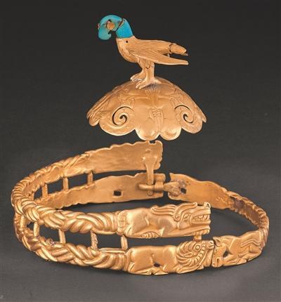 戰(zhàn)國時期鷹頂金冠飾。內(nèi)蒙古博物院供圖