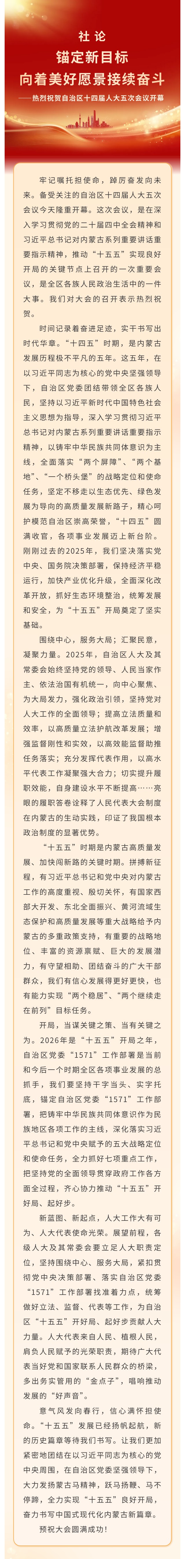 社論|錨定新目標,向著美好愿景接續(xù)奮斗——熱烈祝賀自治區(qū)十四屆人大五次會議開幕