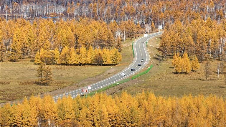 游客在內(nèi)蒙古阿爾山國(guó)家森林公園駕車游玩。新華社發(fā)