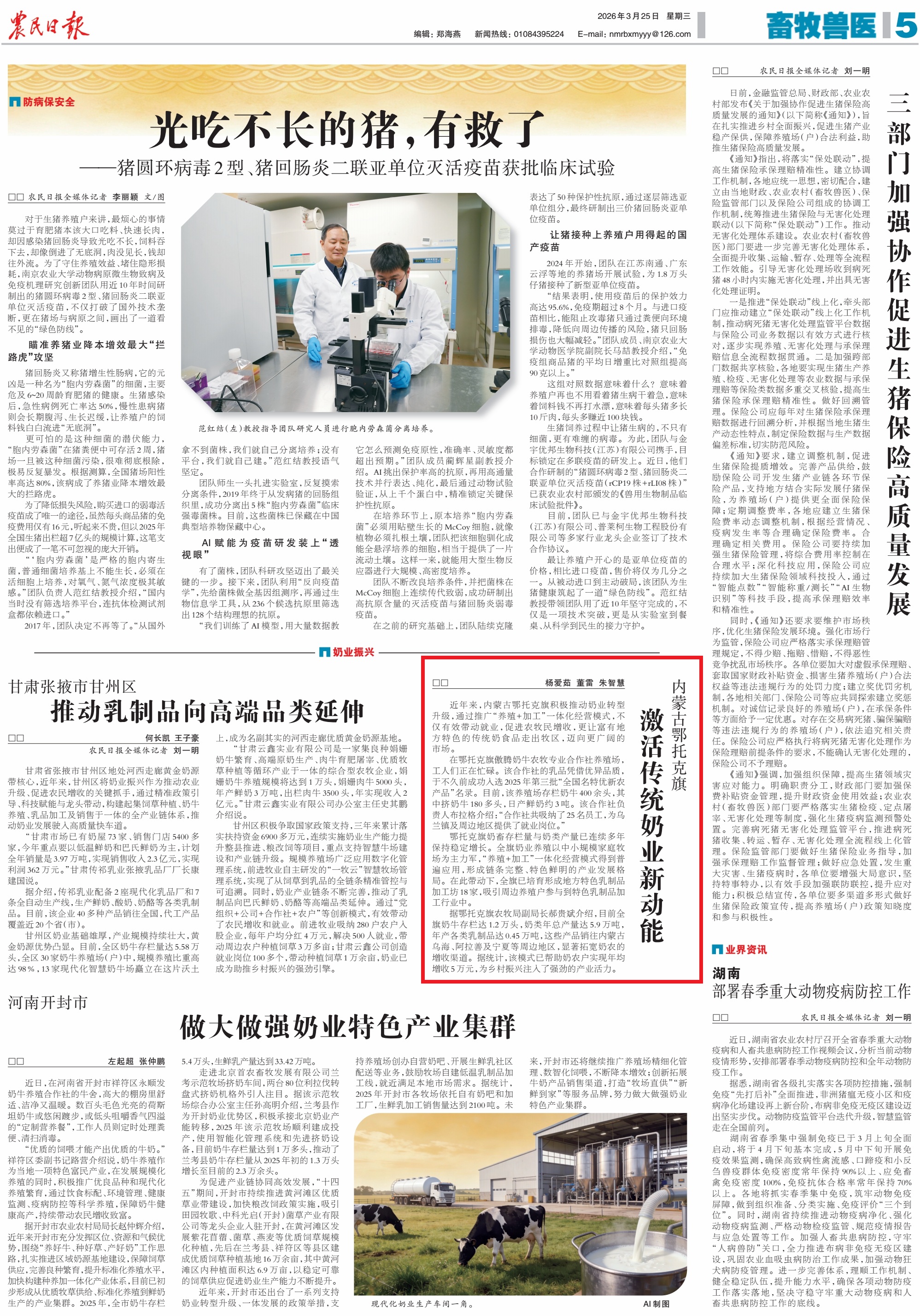 2026年3月25日,《農(nóng)民日報》第5版刊發(fā)了《內(nèi)蒙古鄂托克旗激活傳統(tǒng)奶業(yè)新動能》的文章,報道了內(nèi)蒙古鄂托克旗推廣“養(yǎng)殖 + 加工”一體化奶業(yè)模式,產(chǎn)業(yè)規(guī)模穩(wěn)步增長,特色乳品獲評全國名特優(yōu)新農(nóng)產(chǎn)品。該模式不僅有效帶動就業(yè),促進農(nóng)牧民增收,更讓富有地方特色的傳統(tǒng)奶食品走出牧區(qū),邁向更廣闊的市場。