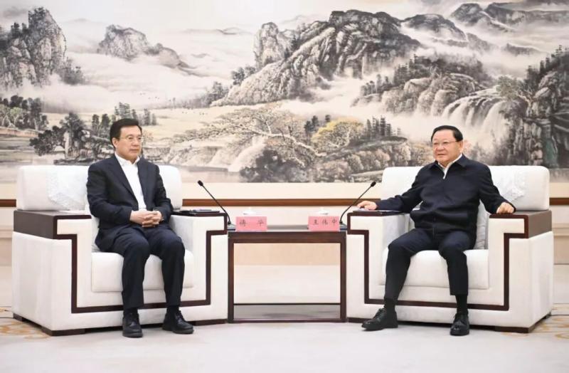 4月12日,自治區(qū)黨委書記、人大常委會(huì)主任王偉中在呼和浩特會(huì)見新華通訊社社長、黨組書記傅華一行。草原云·內(nèi)蒙古新聞網(wǎng)記者 馬建兵 攝