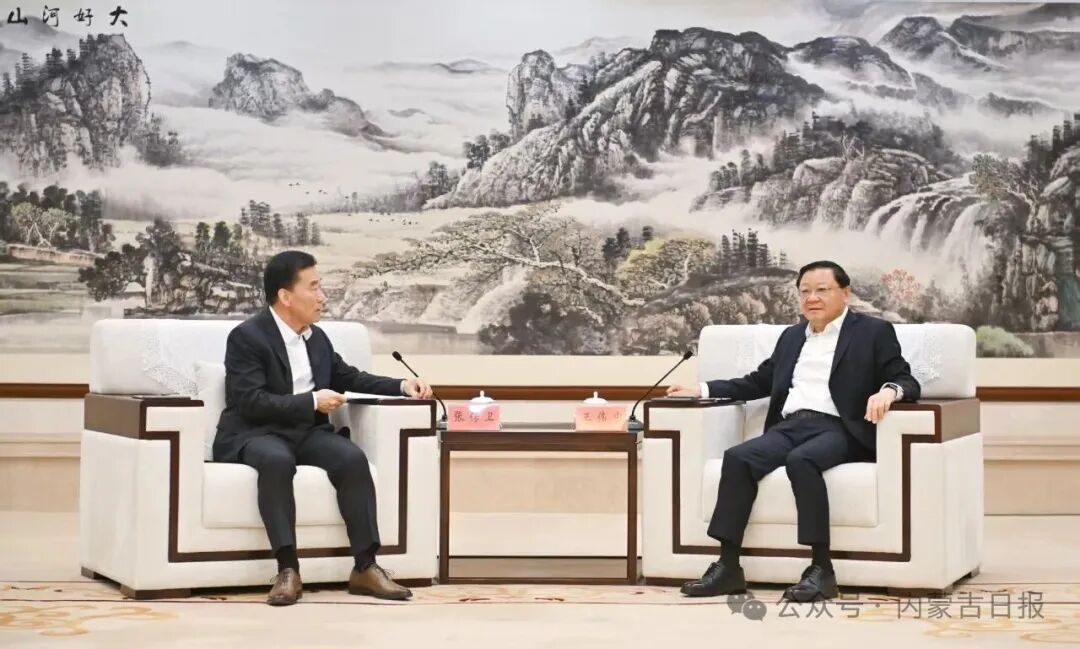 4月16日下午,自治區(qū)黨委書(shū)記、人大常委會(huì)主任王偉中在呼和浩特會(huì)見(jiàn)明陽(yáng)新能源投資控股集團(tuán)有限公司黨委書(shū)記、董事長(zhǎng)張傳衛(wèi)一行。草原云·內(nèi)蒙古新聞網(wǎng)記者