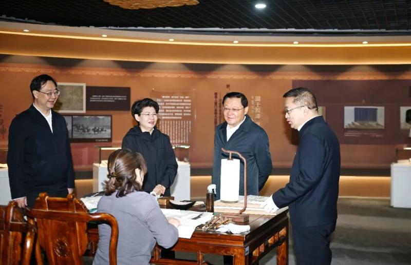 4月20日,自治區(qū)黨委書記、人大常委會主任王偉中走進(jìn)內(nèi)蒙古圖書館,詳細(xì)察看鑄牢中華民族共同體意識館藏古籍展覽情況。草原云·內(nèi)蒙古新聞網(wǎng)記者 馬建兵 攝