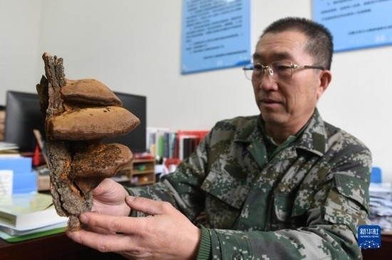 2月20日,在內蒙古賀蘭山國家級自然保護區(qū)管理局,工作人員徐建國展示植物標本。