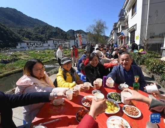 當(dāng)日,上千名游客來(lái)到浙江省建德市蓮花鎮(zhèn)戴家新村民宿一條街,參加鄉(xiāng)村特色百家宴,感受新農(nóng)村“舌尖上的幸福”。本次鄉(xiāng)村百家宴也標(biāo)志著2023建德市蓮花鎮(zhèn)鄉(xiāng)村民俗旅游文化節(jié)正式開(kāi)啟。
