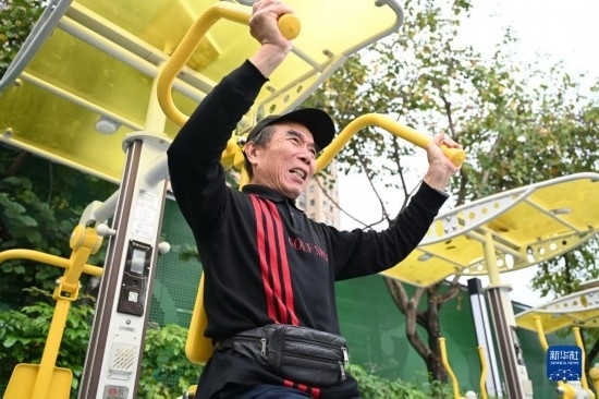 4月24日,市民在福州市鼓樓區(qū)西河智慧體育公園內(nèi)的健身驛站鍛煉。