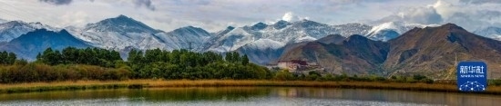 這是在拉魯濕地拍攝的拉薩風(fēng)光,蔥蘢的樹(shù)木點(diǎn)綴在城市中,與山色相映成趣(5月12日攝)。