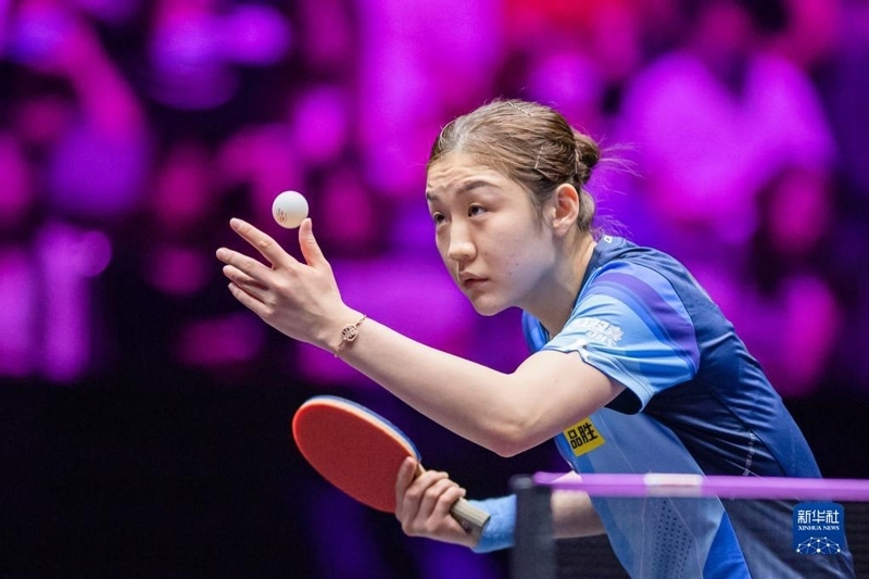 2023年4月11日,陳幸同在比賽中回球。當(dāng)日,在河南新鄉(xiāng)舉行的世界乒乓球職業(yè)大聯(lián)盟(WTT)新鄉(xiāng)冠軍賽女單首輪比賽中,中國選手陳幸同以3比0戰(zhàn)勝日本選手木原美悠,晉級十六強(qiáng)。新華社記者 郝源攝