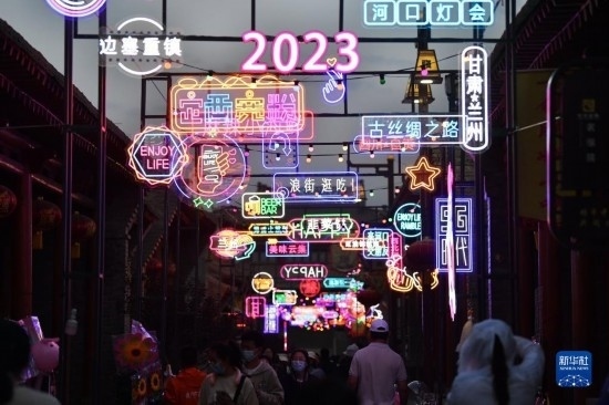 當日,位于甘肅省蘭州市西固區(qū)黃河岸邊的河口古鎮(zhèn)“黃河燈展”正式亮燈。此次燈展以“河口耀千年·絲路映萬古”為主題,各類燈組交相輝映,吸引眾多游客前來游覽。此次燈展將持續(xù)到10月底。燈展活動期間,河口古鎮(zhèn)還將舉辦盛裝巡游等活動,為游客帶來豐富的參觀體驗。