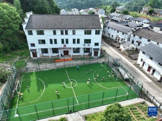 浙江紹興諸暨市浬浦鎮(zhèn)中心學(xué)校依托村鎮(zhèn)足球場(chǎng)、中醫(yī)藥文化體驗(yàn)中心等,開展足球、木球、五禽戲等特色項(xiàng)目,為體育教育注入活力。