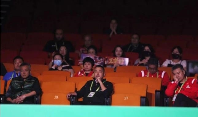 劉國梁(中)在場下觀賽。